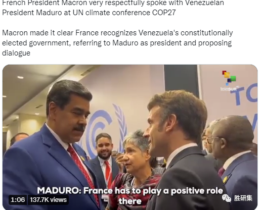 马克龙和马杜罗的这次世纪性握手,成为COP27的绝对焦点,是西方世界和美国敌人之间的交汇点,委内瑞拉的大门向法国人民敞开。