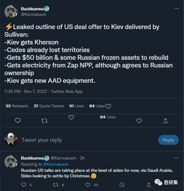 早在11月7日,美国著名网络媒体人就已经爆料沙利文对俄罗斯开出的停火协