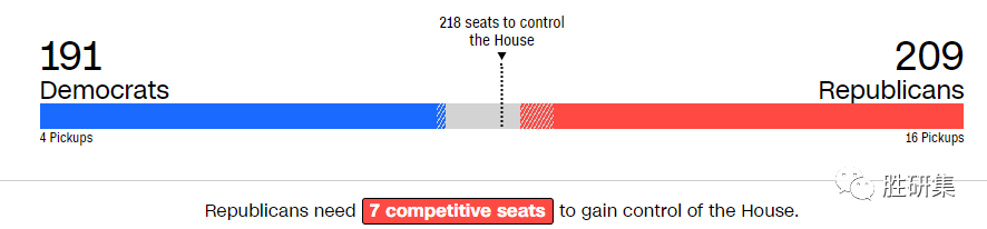 现在,中期选举的结果虽然没有落定,但是众议院归属已经少有悬念了,截至发稿,共和党209席对民主党191席。