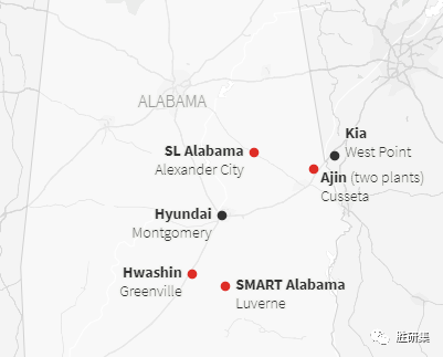 根据阿拉巴马州经济发展伙伴关系(Economic Development Partnership of Alabama),现代汽车和起亚汽车目前在阿拉巴马州拥有数十家供应商。