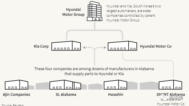 自那以后,阿拉巴马州有多达10家向现代汽车或起亚汽车供应零部件的工厂因童工问题受到了各州和联邦执法或监管机构的调查。