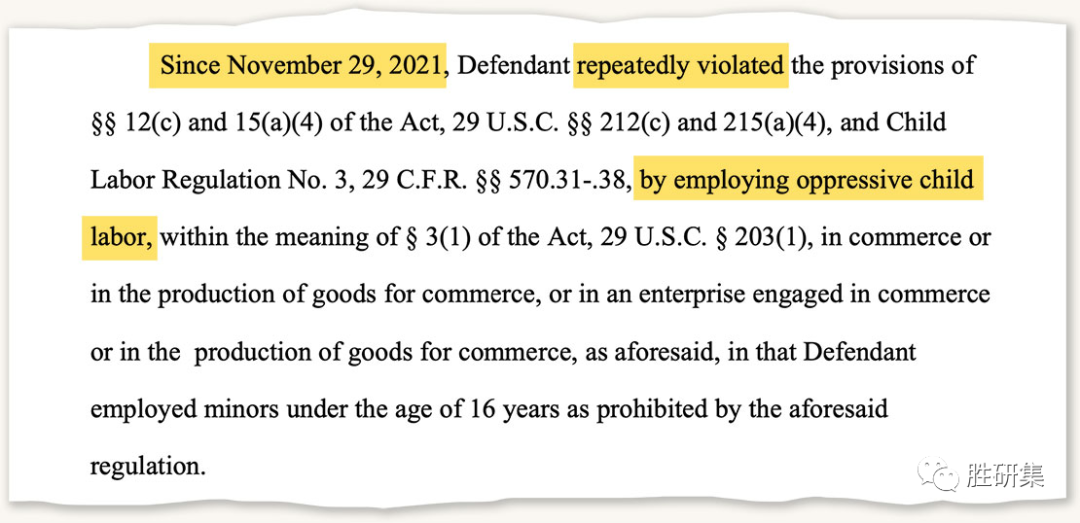 美国劳工部(U.S.Labor Department)在一份法院文件中表示,SL Alabama“一再违反”法律,“雇佣压迫性童工”。该公司被罚款约30000美元。阿拉巴马州劳工部(Department of Labor)对SL及其一家员工服务机构共罚款约36000美元。