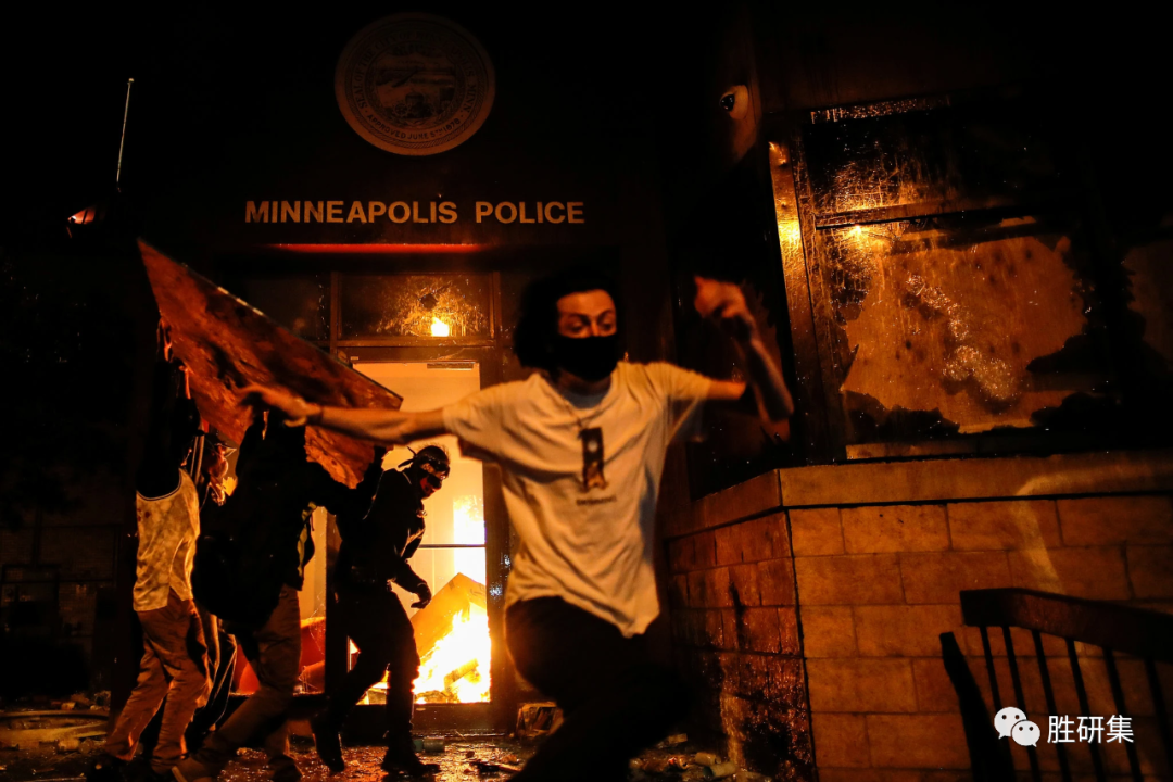 因为白人警察暴力虐杀已被逮捕的黑人,引发了万人大骚乱,烧毁了第三区一所警察局。
