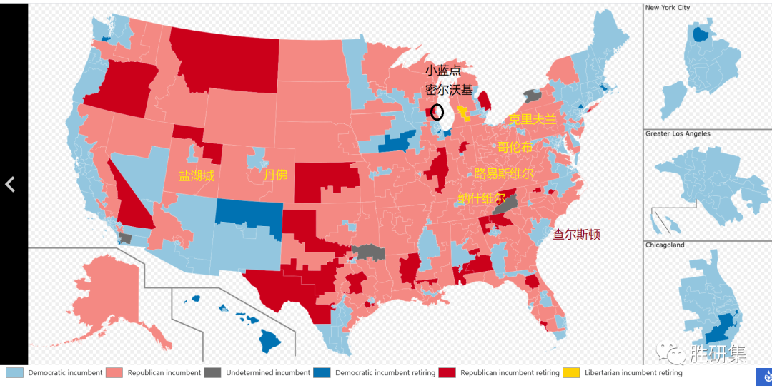 从众议院席位形势图就可以看出,纽约,洛杉矶,芝加哥等超级大城市本身就是民主党地盘,虽然伊利诺伊州16年被特朗普拿下。