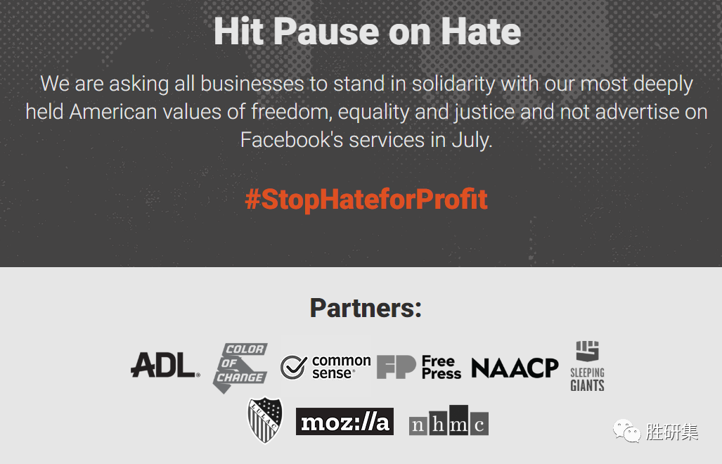 这场运动抗议的是“Facebook一再未能有效解决其平台上激增的仇恨”。