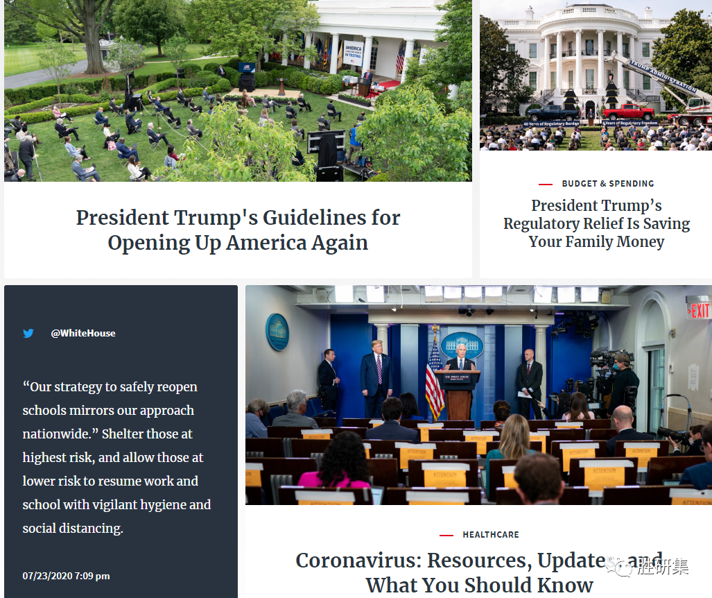 特别是复工情况下复学的安排,也被提到了白宫的首页。