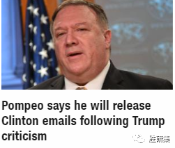 美国多家媒体报道,美国国务卿蓬蓬,在遭受特朗普批评后表态,尽快公布希拉里的邮件。