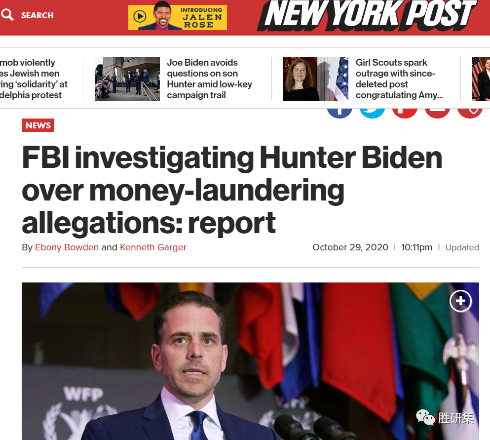 据外媒报道,FBI自2019年以来一直在调查Hunter Biden及其商业伙伴有关洗钱的指控。