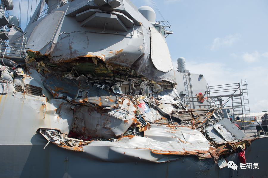 2017年, 在马六甲海峡,”麦凯恩“舰与一艘菲律宾货船相撞,死了10人,船被撞的得面目全非。