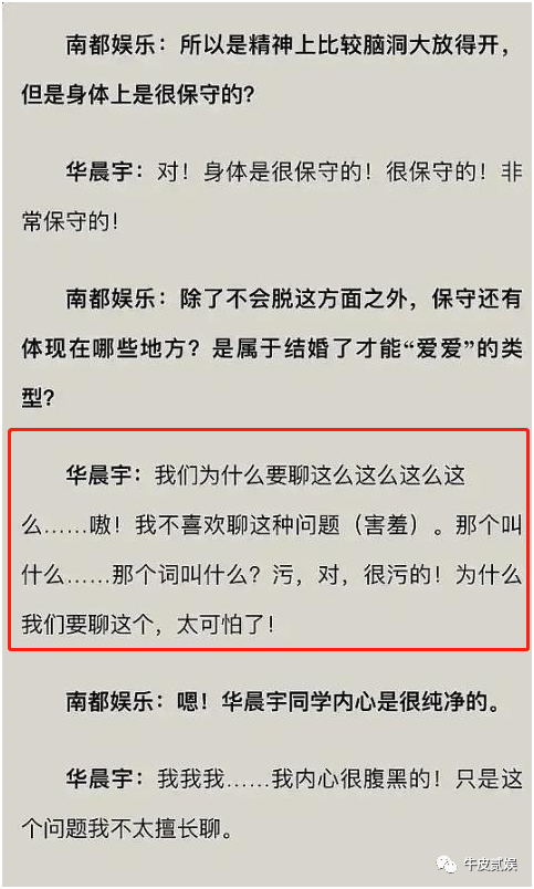 比如,他接受南都娱乐采访,称自己身体很保守,还称“爱爱”很“污”,太可怕了。