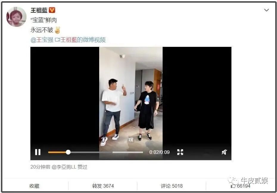 2020年,王祖蓝还分享了两人搞怪同框的视频,“鲜肉鲜肉,永远不皱”的口号,立马勾起一波回忆杀。