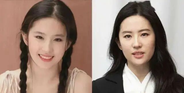 年轻时的刘亦菲脸蛋流畅,脸颊饱满,现在的刘亦菲脸蛋发腮,有种大小脸的感觉。