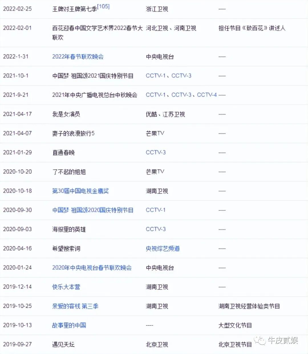 但最让人失望的还是她近3年来把大多数时间花在了综艺和各类晚会上,仅3年就参加了28场综艺晚会,而且还热衷直播行业。