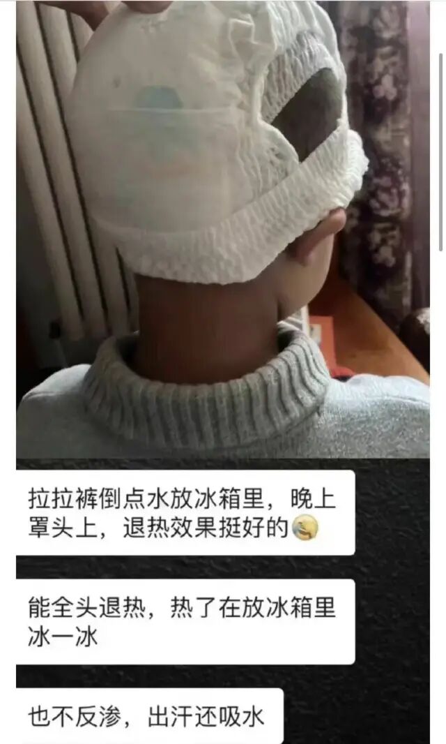 林更新从网上学来的退烧“偏方”,原来是在婴儿的纸尿裤倒上水,冻起来,然后套在头上,就成了退烧神器。三个臭皮匠胜过诸葛亮,网友的智慧果然是无限的啊!网友喊话:林狗,你赶紧出个使用说明!