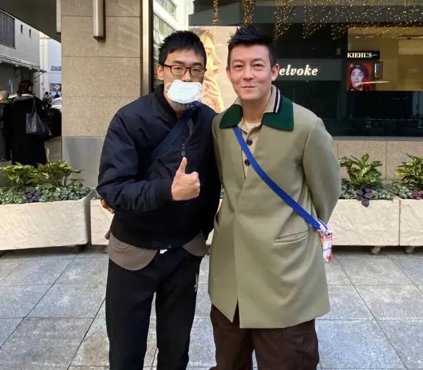 陈冠希自营品牌新品日本发售,网友排队购买时遇到了陈冠希,很激动,激动到大脑一片空白,上前和陈冠希了张影。