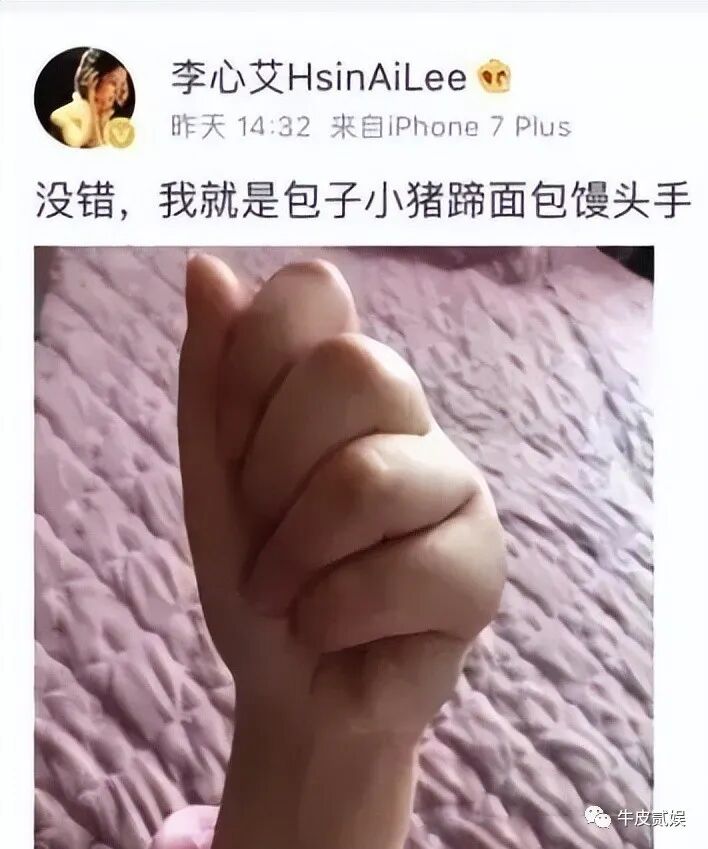 和周迅一样,李心艾的小手,不但短而胖,还容易变颜色。