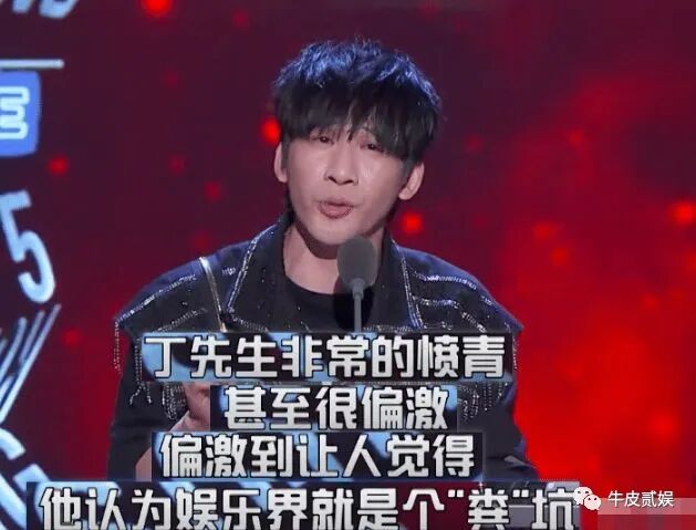“丁先生非常的愤青,而且还很偏激,他认为娱乐界是一个粪坑,但是丁先生还经常往里钻。一个人要是进入粪坑的话,要记住一件事就可以了,那就是闭嘴。但是丁先生非得张着嘴叭叭,所以他一张嘴就过分。”