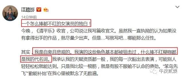 不过作为演员来说,认真磨炼演技,能为观众贡献出精彩的演出,“红”与“不红”又有什么关系呢?