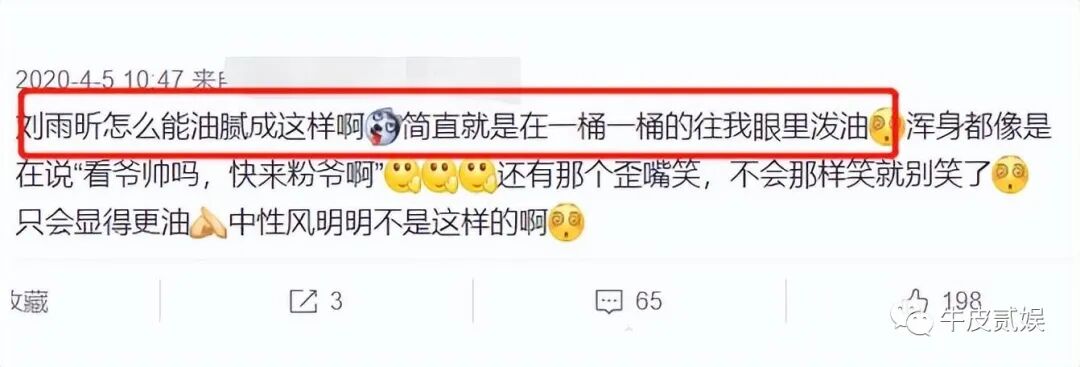 而这也正如网友们所说:刘雨昕怎么能油腻成这样啊,简直就是一桶桶地往我眼里泼油。