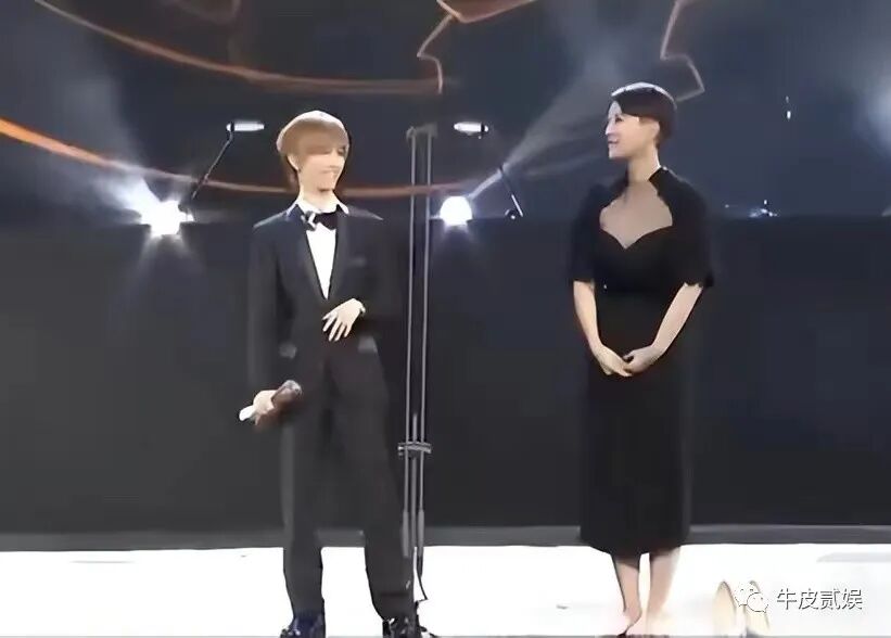 反观奚美娟,并没有伸手去接,而是平平的伸出手,刘晓庆见状,也停止了“加戏”,单手将奖杯递给奚美娟,露出尴尬而不失礼貌的微笑。
