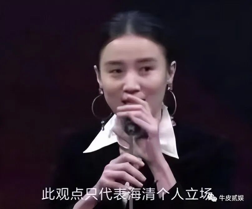 宋佳也“毫不留情”,急不可耐的跑到话筒前“澄清”∶“此观点只代表海清个人立场,谢谢。”然后不顾情面下台走人。