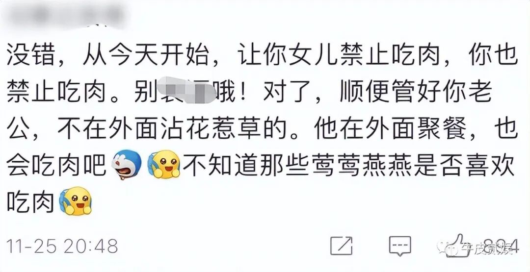 因此也有网友回击“你有没有让你一家人都吃素”之类的话。
