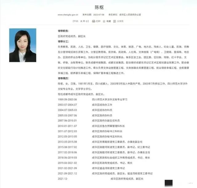 成都成华区女副区长,41岁能爬到这个位置,就这样终止了,可惜了…