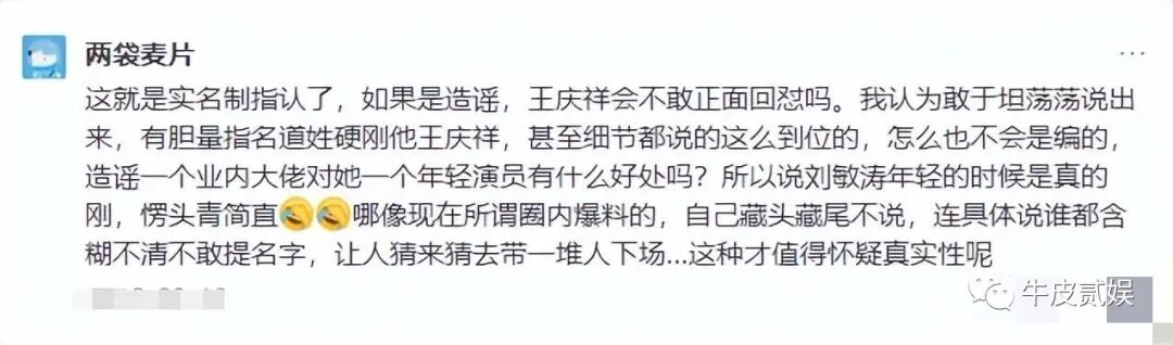 不喜欢他的网友却说,这是实名制认了,如果是造谣,老王会不敢正面回怼?只能说年轻时的刘敏涛很刚......