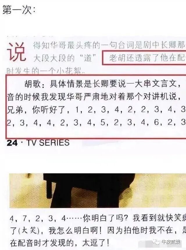 事实上,霍建华也的确念的是1234567,因为原台词是要说一大段复杂且冗长的文言文,而剧组一直要求演员们加快拍摄进度。