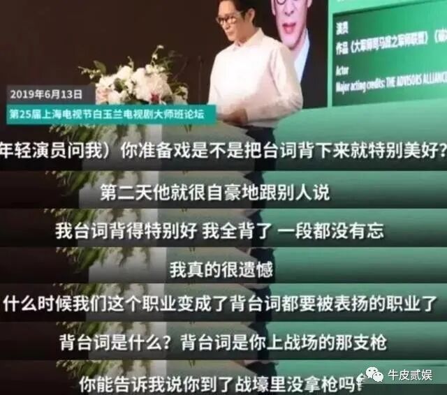 和他演对手戏的杨明娜,受不了他这个,就好奇地问了他一句:如果还有第二句你怎么接?