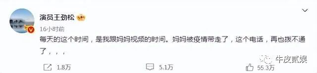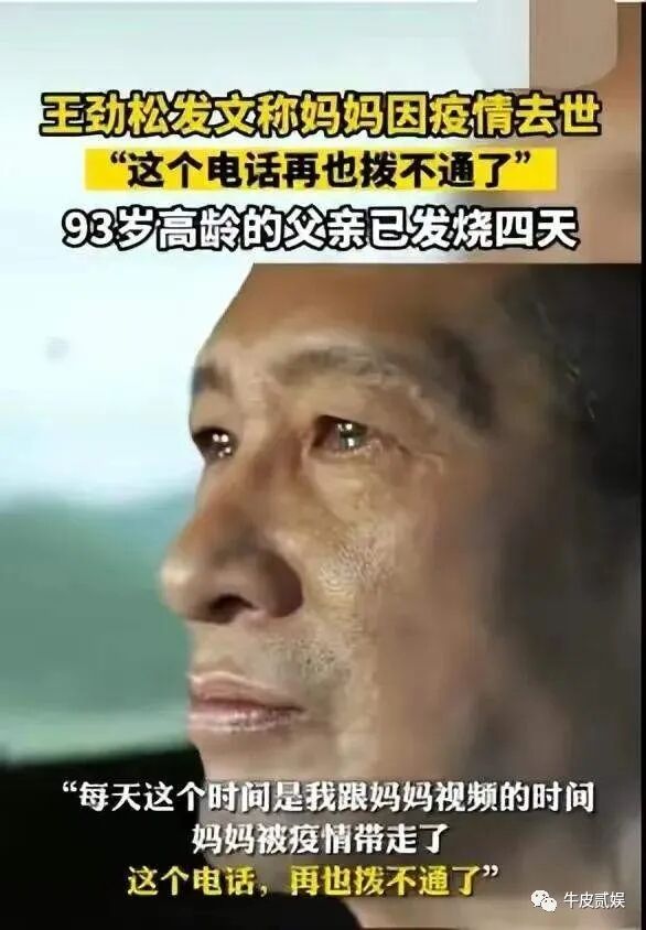 比如王劲松今天发文称:每天的这个时间,是我跟妈妈视频的时间。妈妈被疫情带走了,这个电话,再也打不通了。