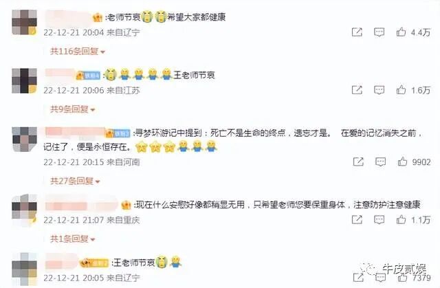 言语之间,王老师的言语很沉重,字字充满了悲伤之情。这也让很多网友心疼起了他,并纷纷安慰他。