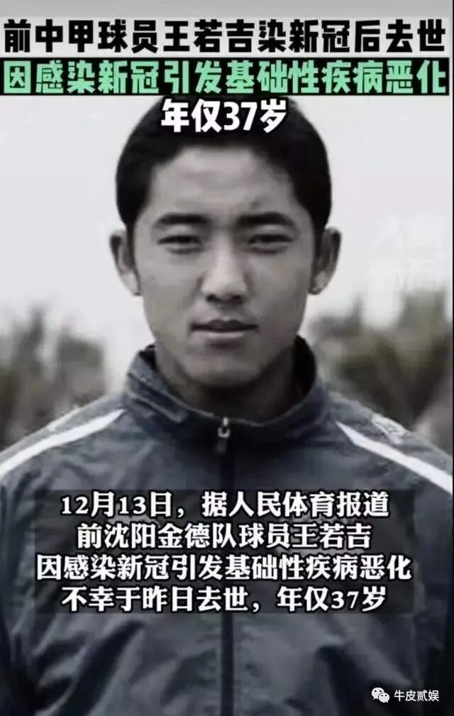还有前足球运动员王若吉,也是因为感染新冠,诱发他的糖尿病恶化,最终没有抢救过来,享年才37岁。
