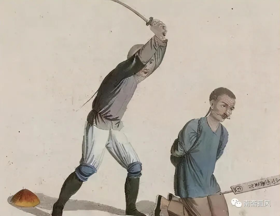刽子手先喝下了一碗酒水,然后对着砍刀吹气,等到时辰一到,他就依照监斩官的吩咐把犯人的头压低,接着举起屠刀,手起刀落。