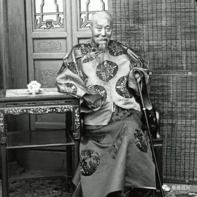 最引人注意的是老人右脸上,一个明显的疤痕,这是李鸿章在日本受伤痊愈后,拍摄而成。