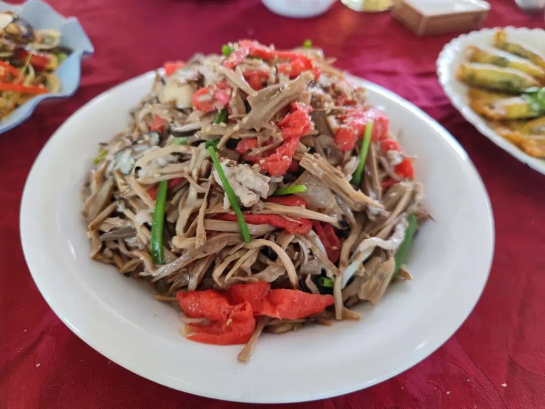 在东北老家农村,人们吃酒席桌子上放的都是硬菜,全是大块的肉,而在这里却是荤素搭配的菜品,而且素更多,荤更少,对于张涛而言,眼前的这道笋干炒肉一点都不像硬菜。