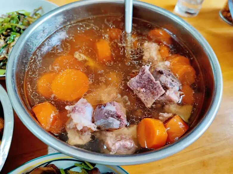 知道儿子带着女友回家,阿姨很是高兴,一大早就去菜市场买菜了,买了最新鲜的排骨回来做了一道胡萝卜排骨汤。