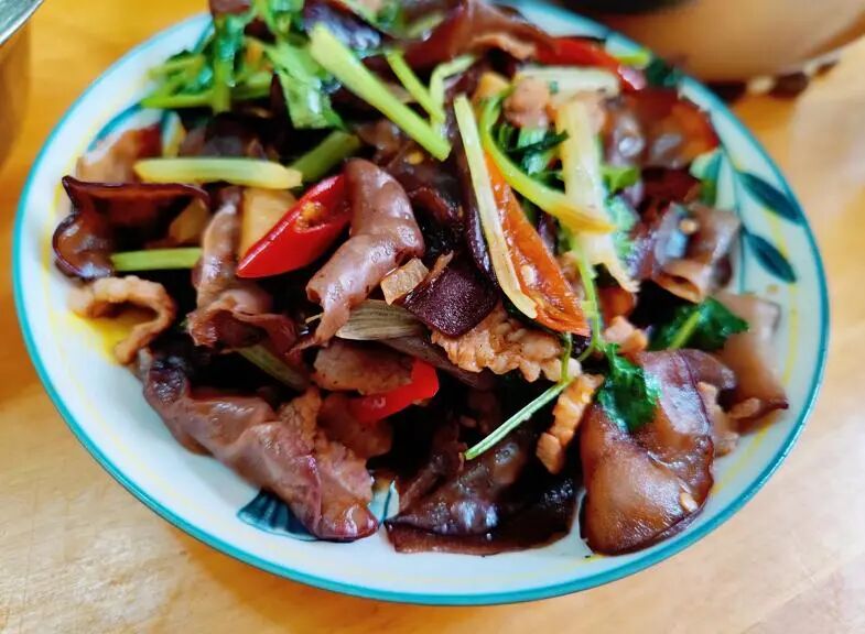 黑木耳炒肉是阿姨最喜欢做的一道家常菜,将瘦肉用盐腌制然后放入锅中炒香,再放入提前泡好的黑木耳一起入锅爆炒,加入少许小米椒,香葱香菜等配料,一道农家风味的黑木耳炒肉便做好了。