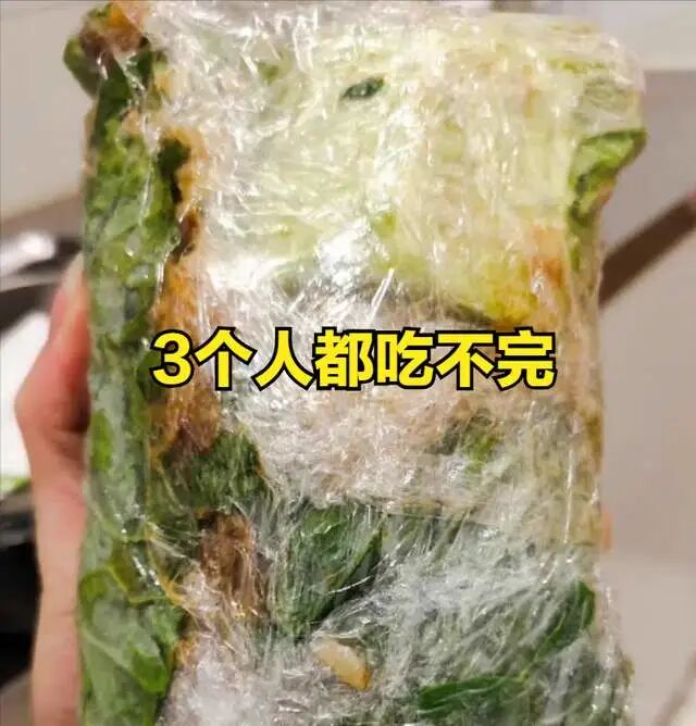 在视频中可以看到,食堂阿姨正拿着一片巨大的菜叶子将米饭和菜品馅料包裹起来,大饭包比手臂还粗,1个饭团够3个人吃,如果是饭量小的女生,5个人都可能吃不完。