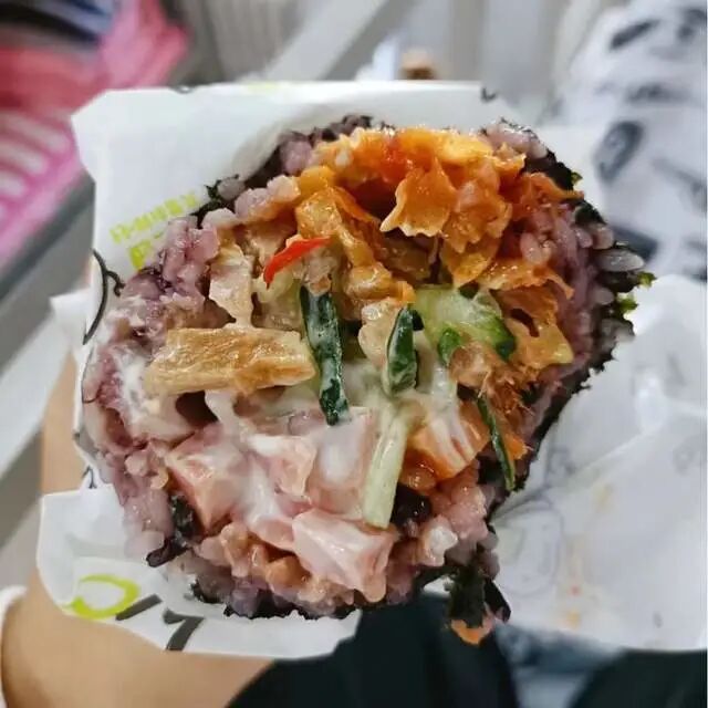 在南方地区,7块钱都买不到一个饭团,最低也要8块钱,没想到在这里却实现了“饭团自由”,这玩意不仅大,而且里面的馅料很充足,有荤有素,口感吃起来一点都不单调。