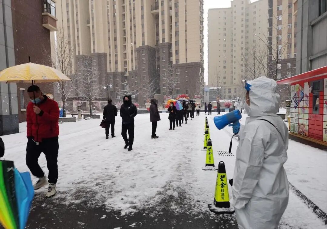 虽然哈尔滨下着大雪,但是人们还是很自觉地排队进行核酸检测,刘龙伟待在酒店里,既温暖又舒服,还不用去排队做核酸,每日都有一线医护人员上门做核酸,饭菜还有人亲自送上门,只需要躺在酒店玩手机追剧就可以了。