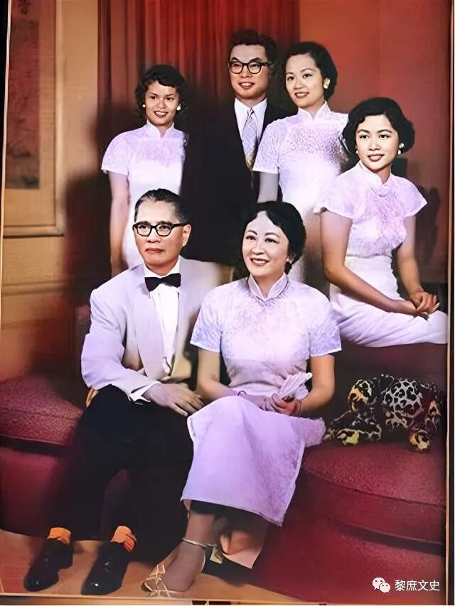 宋子文和张乐怡晚年和子女在一起的照片
