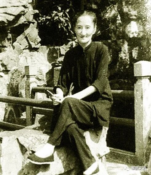 晚年她也只留有一张穿着素服,牙齿落尽,坐在大石头上,对着镜头,浅浅而笑的照片。她清瘦如柴,神采依旧。