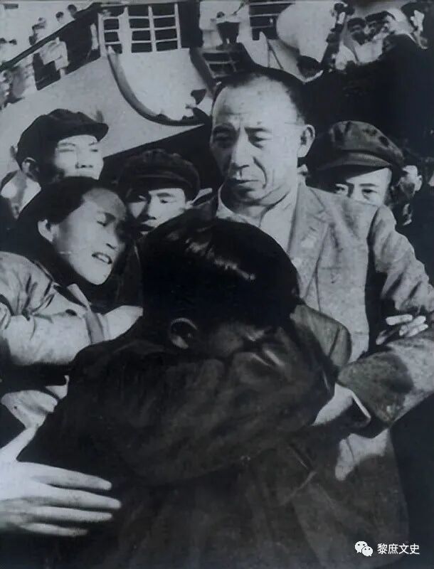终于盼到刘连仁回来的妻儿,穿过人群,奔向刘连仁,三个人抱作一团大哭起来。