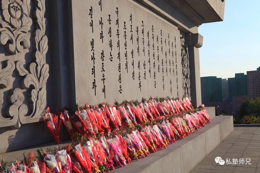 中朝友谊纪念碑,给志愿军纪念塔献花,花很便宜,我们团每个人都是发自内心去献花并鞠躬。