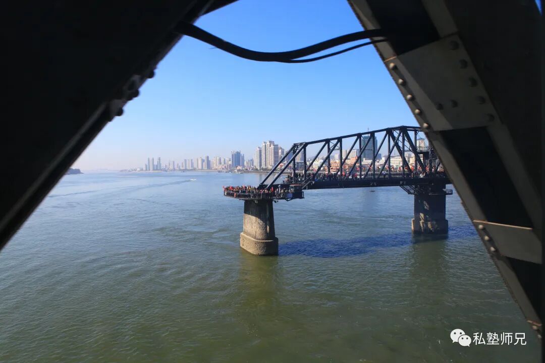 3.从丹东出发,没一会就经过了中朝友谊桥,看到对面的鸭绿江断桥,这是当年美军轰炸变造成的,现在是丹东著名景点之一,经常有许多游客在那拍照。