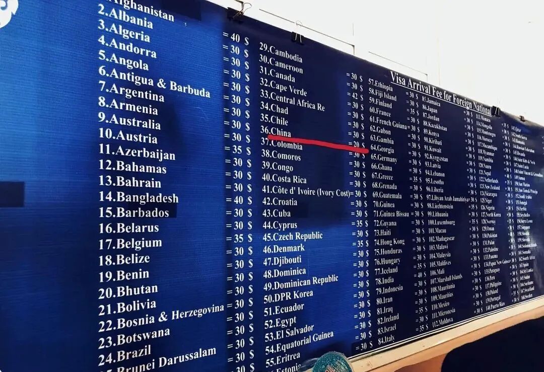 从机场就能步行到海关,可想而知这机场有多小。老挝对中国实行的是落地签,不同的国籍所需的签证费不一,要数是中国办老挝落地签最便宜,价位板上显示的是20美元。不过,还要多交1美元服务费。