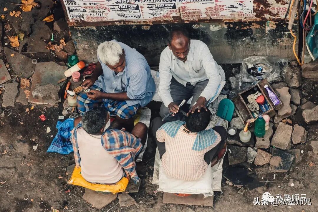 7、印度的街道能看见各种现象,比如乞丐很多,比如露天理发、生活做饭吃饭、席地而坐等等。