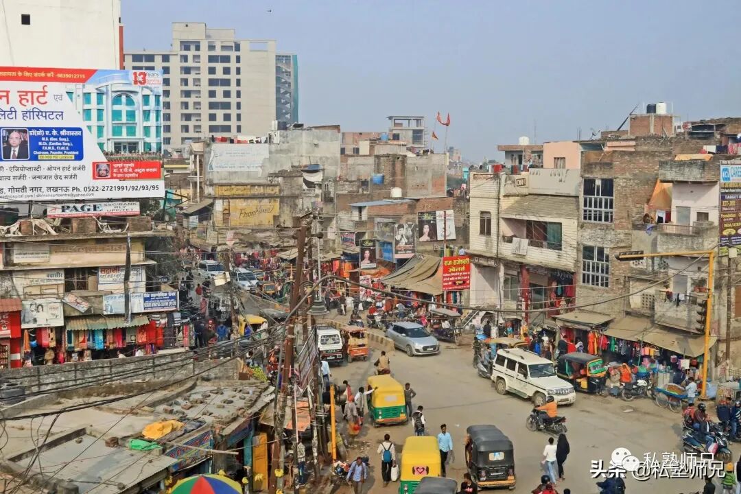 3、从公交车往外看,德里作为印度的首都,其城市基础设施落后,好多是3~5层的破旧楼房,街上随处可见杂乱无章电线。交通也混乱,突突车、人力三轮车、行人等乱窜,少见有过街天桥。