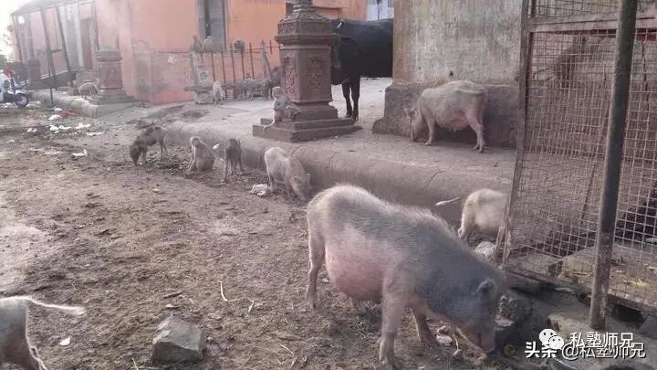 4、街道上到处可见各种动物“和谐相处”,他们信仰各种各样的神,神可以是猴子、大象……万万千千。牛慢悠悠行走着,猪旁若无人觅食,猴子在屋顶窜来窜去,流浪狗随意瘫睡在流淌着脏水混合尿 .液的路边,鸽子也不少,经常看到有人投喂。